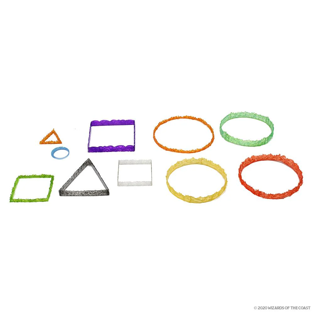 Add spell templates to your table today with the D&D Icons of the Realms: Spell Effects: Halaster's Tumultuous Templates, which will include pre-painted template representations of: