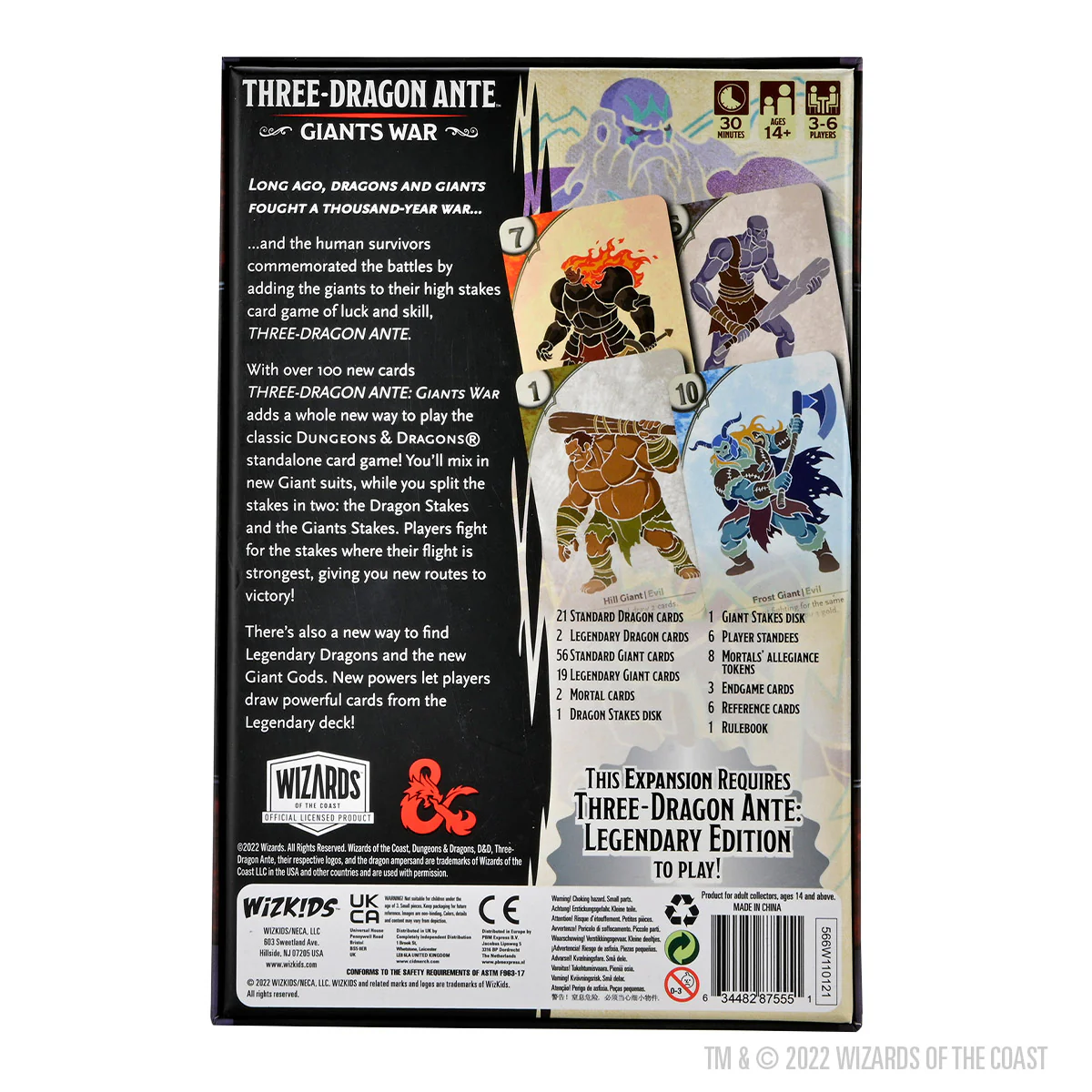 With over 100 new cards THREE-DRAGON ANTE: Giants War adds a whole new way to play the classic Dungeons & Dragons® standalone card game! You’ll mix in new Giant suits, while you split the stakes in two: the Dragon Stakes and the Giants Stakes. Players fight for the stakes where their flight is strongest, giving you new routes to victory!